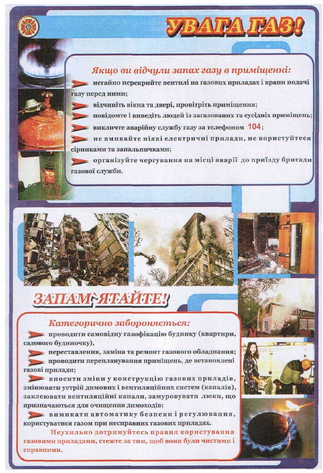 – перед включенням газових приладів перевірте чи не має в приміщенні специфічного запаху,